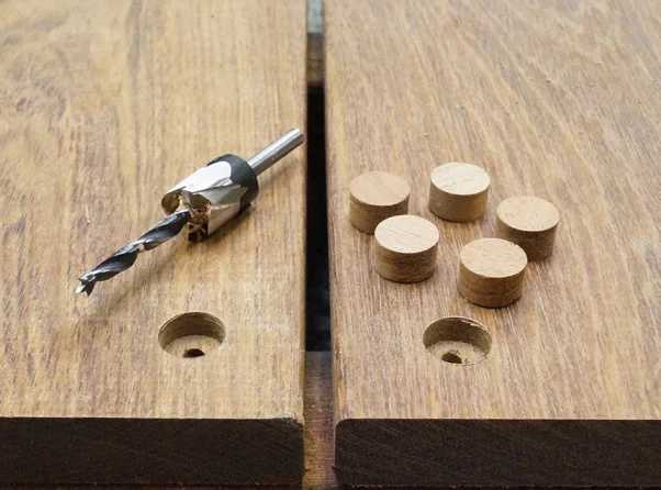 - Propbor/forsænker bruges til at forberede terrassebrædder til montering ved at bore fordybninger. Herefter kan du bore propper af fraskæringer med et propbor eller blot købe færdiglavet propper. For at lave en pæn afslutning fjernes propperne med et stemmejern, hvorefter overfladen slibes efterfølgende med en excentersliber. Dette sikrer, at skruerne kan sidde under overfladen af brædderne, hvilket giver et glat og æstetisk tiltalende finish uden fremspringende skruehoveder.