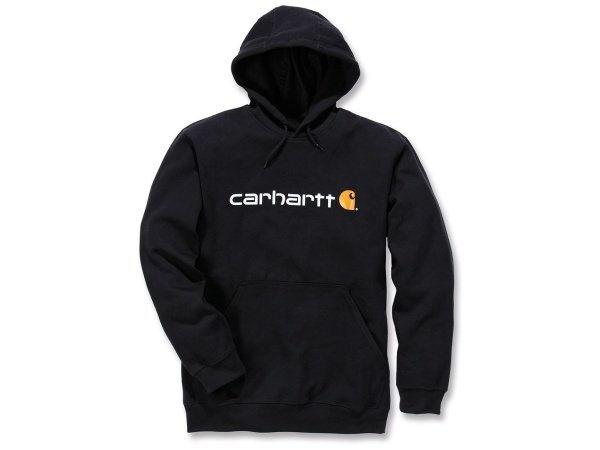 Carhartt Signature hættetrøje er en enkelt og klassisk hættetrøje med et stort Carhartt logo på fronten. Du får her en hættetrøje med høj slidstyrke, hvorfor den er ideel til både arbejde og fritid. På fronten er der en stor kængurulomme, hvor der er rig plads til at varme din hænder eller opbevare genstande.