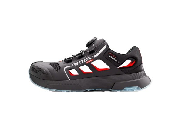 Airtox FS22 ATX sikkerhedssandal kombinerer komfort, sikkerhed og moderne design. Sandalen er metalfri og har en slidstærk snudeforstærkning samt TPA tåkappe, hvilket sikrer beskyttelse uden kompromis. Den specialudviklede ydersål i transparent XTPU-ULTRA med Force-Grip® teknologi giver fremragende skridsikring, mens styroSoft 4.0 indersålen og den brede pasform sikrer optimal komfort hele dagen. Overdelen i Nano-channel mikrofiber gør sandalen åndbar og holdbar, og den praktiske wirelukning gør den nem at tilpasse.