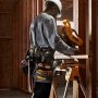 Værktøjsbæltet fra Dewalt er designet med bærehåndtag i toppen, så den let kan transporteres, når du ikke har den på.