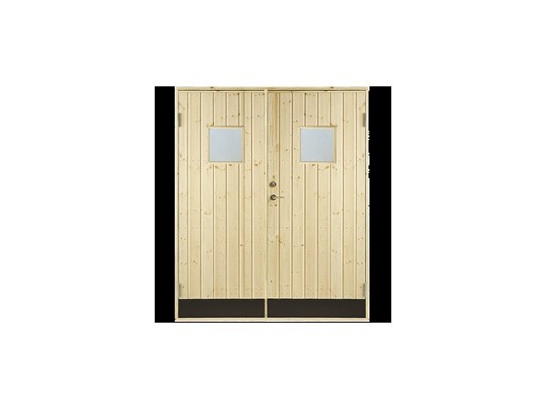 Plus udhusdør 1512x1878mm ubehandlet med dobbelt glas inklusiv karm er en stor dobbeltdør med vinduer i højkvalitets fyrretræ.