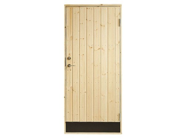 Plus udhusdør, panel, inkl. karm, højre (39309-1). Udhusdøren er af høj skandinavisk kvalitet, og den er velegnet til uopvarmede rum med ingen eller begrænset temperaturforskel mellem inde og ude på max. 10 gr. forskel, eksempelvis et redskabsrum.