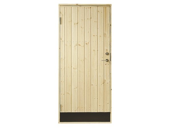 Plus udhusdør, panel, inkl. karm, venstre (39310-1). Udhusdøren er af høj skandinavisk kvalitet, og den er velegnet til uopvarmede rum med ingen eller begrænset temperaturforskel mellem inde og ude på max. 10 gr. forskel, eksempelvis et redskabsrum.