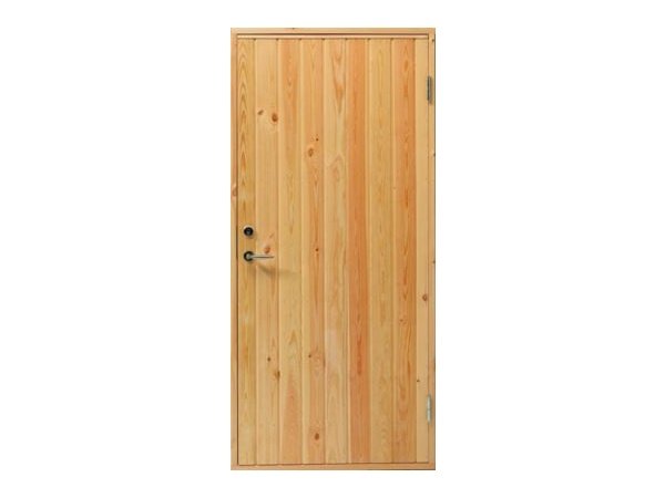 Swedoor udhusdør uden glas 948x2050x92 mm højre i ubehandlet fyr med lodrette spor er perfekt til fx udhuset, cykelskuret eller jagthytten. Udhusdøren er beklædt med klassisk rustik fyr, som skal efterbehandles inden montering. Døren er med meget enkel isolering og skal kun anvendes til uopvarmede rum med ingen eller begrænset temperaturforskel mellem inde og ude. Typisk ikke mere end -/+ 3 grader. Udhusdøren leveres altid hængt i karm, dog uden dørgreb og cylinder. Bemærk: Swedoor/Jeld-wen udhusdør leveres i ubehandlet fyrretræ. For at sikre den nye udhusdør et langt og godt liv, anbefaler Swedoor Jeld-Wen at male døren med en heldækkende olie- eller vandbaseret maling til udendørs brug. Undgå klar lak, da det giver en dårlig beskyttelse og kan forårsage sprækkedannelser i træet. Udhusdøren skal males på begge sider ca. hvert andet år, eller som minimum inden vand og sol nedbryder overfladen.