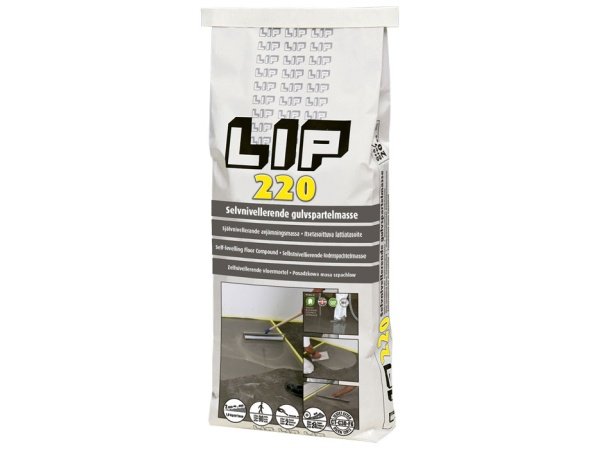 ForsideByggematerialerFliseopsætningGulvspartelmasseLip 220 gulvspartelmasse‹› Lip 220 gulvspartelmasse 20kg selvnivellerende 240023 Varenummer: 1972525 5709350240023 EAN: 5709350240023 154,00kr.pr. poseLæg i kurv FragtsatserLængder op til og med 7,00 meter1075,- inkl. momsLængder op til og med 13,00 meter1200,- inkl. momsLængder op til og med 17,00 meter1500,- inkl. momsPå lager 1-3 hverdage Fragtpris: 399,00Kan varen afhentes? Lagerstatus i butikHusk også Lip 54 primer universal 2,5ltr 3856606215,00kr.pr. dk. Svalk retteskinne alu 18mmx100mm 7543fra159,00kr. Se mere Sprehn glittebræt 130x280mm m/trægreb 991501163,00kr. Jopa Prodi-line murerbalje 65ltr sort 17301049,95kr. Lip 54 primer universal 10ltr 3856614778,00kr.pr. dk.Varenummer Pris:ProduktSpecifikationer Produkt LIP 220 selvnivellerende gulvspartelmasse i 20 kg-pose benyttes til både opretning spartling af diverse materialer: beton pudslag natursten keramiske fliser metal støbeasfalt klinker mm Det er muligt at udlægge/spartle i lige den lagtykkelse du skal bruge, i en arbejdsgang. Produktfordele Selvnivellerende Cementbaseret Pumpbar Spændingsfattig Plastforstærket Specifikationer for LIP 220 gulvspartelmasse 20kg selvnivellerende 240023 Producent: LIP Produkt: LIP 220 gulvspartelmasse Indhold: 20 kg Blandingsforhold: 20 kg LIP 220 blandes med ca. 5 liter rent, koldt vand Forbrug: 1,8 kg pr. mm pr. m² Lagtykkelse: Fra 2 mm til praktisk talt enhver ønsket lagtykkelse Begyndende afbinding: Ca. ½ time Gangbart efter: Ca 2 timer Klar til flisebelægning efter: Ca. 2 timer Klar til tæt belægning efter: Ca. 12 timer Downloads Produktblad - LIP 220 gulvspartelmasseSikkerhedsdatablad - LIP 220 gulvspartelmasse Anchor for upsell scroll