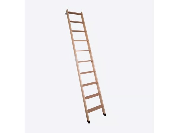 For øget sikkerhed anbefales det at fastgøre stigen. Du kan tilkøbe et glidebeslag, der monteres på stigen og hemsens kant, så stigen kan skubbes ind til væggen, når den ikke er i brug. Alternativt kan du vælge en krog til fastgørelse.