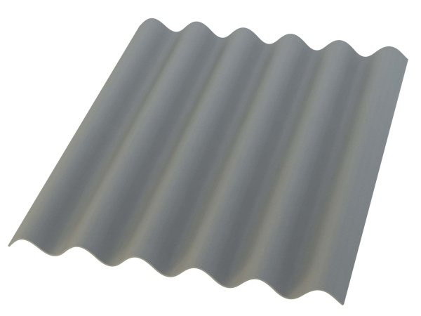 B9-S bølgeplade mørkegrå 1025 x 1180 mm fuldkantet anvendes til tage på landejendomme og industribygninger med større tagflader. Bølgepladen produceres med indstøbte strips, som erstatning for trædesikkert underlag. Pladen kan monteres uden undertag og anvendes ved min. 14° taghældning.