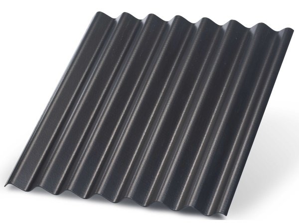 Bølgeplade B6-S sortblå 1090 x 1180 mm fuldkantet med strips er en behandlet tagplade i fibercement med indstøbte plastikstrips, som udgør en erstatning for trædesikkert underlag. B6 bølgepladen leveres både med hjørneafskæringer og skruehuller (HJ/HU) og som fuldkantede (FK) plader.