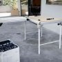 Bordet kan hurtigt stilles op ved hjælp af klapbenene med højdeindstillelige fødder, der sikrer dig en jævn arbejdsflade og bordhøjden er på 90 cm.