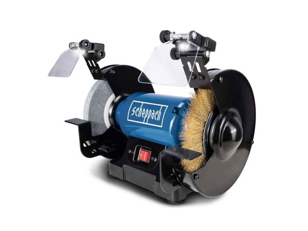 Scheppach bænksliber SM200LB til alt slibe- og skærpearbejde. SM200LB dobbeltsliberen er ideel til slibning, skærpearbejde, rengøring eller forberedelse af svejsearbejde. Maskinen kan fastgøres til arbejdsbordet efter behov, men den kompakte konstruktion sikrer en stabil position.