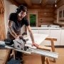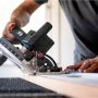 - Justerbar placering uden spillerum på styreskinner fra Metabo og andre producenter for præcise skæreresultater