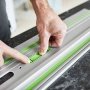 Med Festool føringsskinne FS 1400/2-KP-Set kan du lave lige og præcise snit f.eks. i gulv, bordplade eller væg. Med det selvjusterende forbindelsesstykke forbinder du begge skinner til lange, lige snit uden afvigelser.
