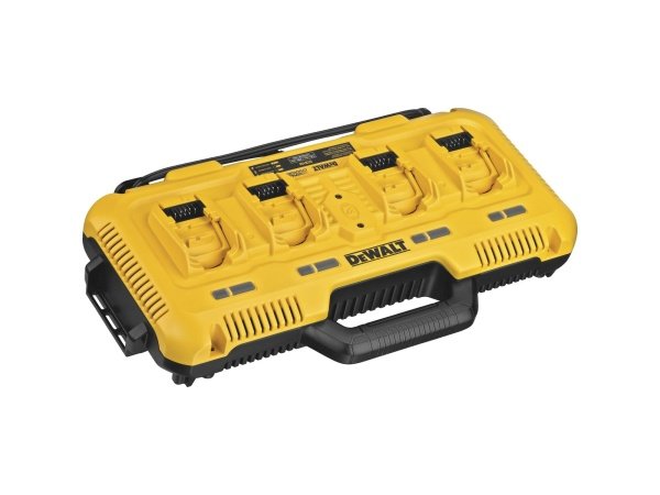 Dewalt hurtiglader DCB104-QW XR 18V er en utrolig effektiv akku-lader, der kan oplade hele 4 stk. akkuer på én og samme tid. Dewalt hurtigladeren kan oplade 4 stk. 9Ah XR FLEXVOLT akkuer på bare 75 minutter og 4 stk. 12Ah på 100 minutter.
