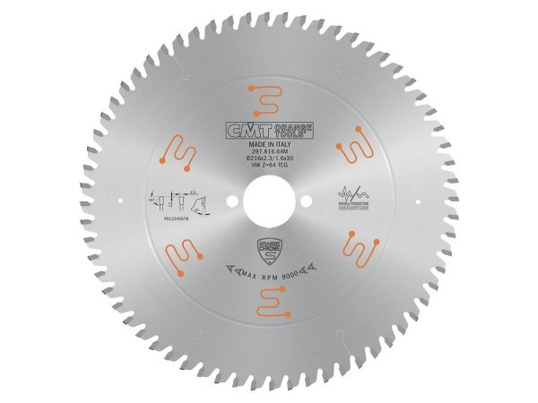 Specifikationer for CMT savklinge Xtreme Line 216x2,3x30mm Z64 NE Neg Chrome 297.816.64M