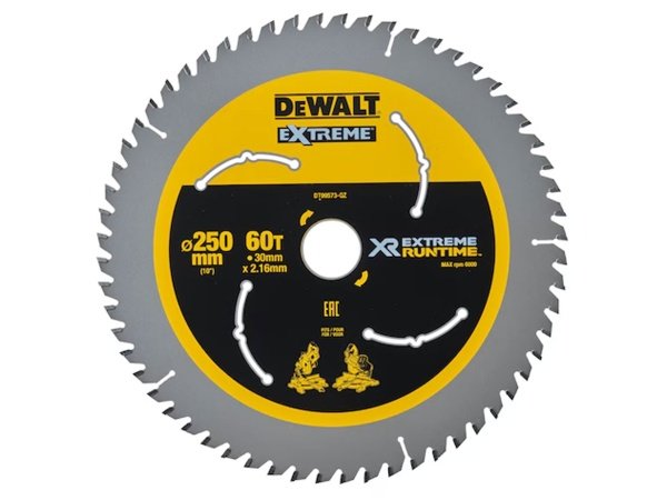Specifikationer for Dewalt rundsavklinge 250x30mm Z60 DT99573-QZ