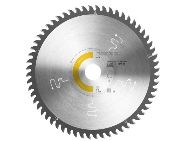 Festool fintandssavklinge 254x2,4x30 W60 er en savklinge til bearbejdning af finerede plader, parket, hårdt kunststof, hård PVC, tværsnit i massivt træ, møbelplader, krydsfinér, Multiplex/lamineret træ, akrylglas og MDF mellemhårde fiberplader.