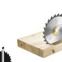 Savklingen er fremstillet af kvalitetsstål og savtænderne er af meget finkornet hårdmetal. Tandformen, PW er tilpasset materialet og med Festools farvekoder, er det let at vælge den rigtige savklinge.