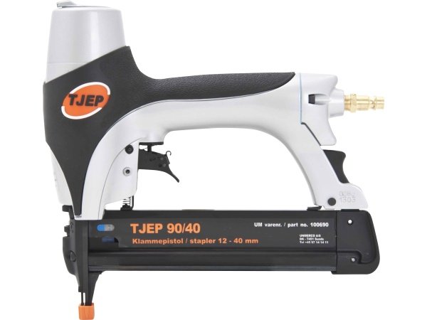 Tjep klammepistol 90/40 trykluftpistol er en lille og kompakt klammepistol til indfatninger, lister, plader, rammer og lignende. Klammepistolen er utrolig nem og behagelig at arbejde med takket være den lave vægt.