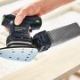 Festool deltasliber DTS 400 REQ er velegnet til længerevarende slibearbejde over hovedhøjde, til lodrette overflader og enhåndsslibning af små overflader, kanter og hjørner. Med en kompakt konstruktion, en vægt på 1,2 kg. og den nyudviklede MMC reguleringselektronik, sikrer en op til 25 % højere slibeeffekt ved at holde omdrejningstallet konstant.