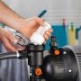 - Pumpen slukker automatisk, hvis der eksempelvis ikke kommer mere væske fra brønde eller cisterner