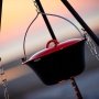 Bon-Fire gryde m/låg 8 ltr sort/rød emalje (100039) er perfekt som ophæng i Bon-Fire sæt m/delt treben. Denne gryde giver dig mange muligheder, når det kommer til madlavning over bål. Du kan f.eks. bruge gryden til retter, der skal stå om simre i lang tid, hvor du i mellemtiden kan bruge en grillrist eller pande og tilberede resten af retten.