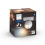 Philips Hue Buckram er en serie af spotlamper med et kompakt, rundt design. Denne lampe har et justerbar spot, der med sin White ambiance GU10 pære gør det muligt at tilpasse din belysning til din dagligdag. Skift mellem kolde og varme toner af hvidt lys, og vælg mellem fire forudindstillede lysscener for at skabe den perfekte stemning. Du kan nemt styre lyset via din Hue app, dit Hue tilbehør og den medfølgende Dimmer switch, og hvis du tilføjer en Hue Bridge, får du endnu flere muligheder med din intelligente belysning.