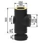 Skorsten T-sektion 90° med renselem. T-sektion der anvendes på bagudmonterede skorstene med behov for adgang ind for skorstensfejere. T-sektionen måler 50 cm, har en diameter på Ø25 cm og er med renselem og spændebånd.