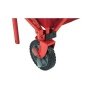 Polyesteren med forstærket bund er meget holdbar og stålrammen og hjulbremsen sikrer sikker transport. På siderne er der D-ringe til fastgørelse af bagagen.