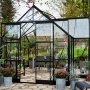 Halls Garden Room 12,9 m² drivhus 3 mm hærdet glas og sorte profiler. Halls Garden Room 12,9 m² er et stort drivhus med masser af plads til dyrkning af planter, blomster, frugter, krydderurter og hele familien til både hverdag og fest. Halls Garden Room er det perfekte uderum til den aktive familie, hvor du uden problemer kan opdele dyrkning i den ene side af drivhuset og plads til hele familien i den anden side.