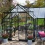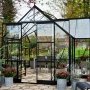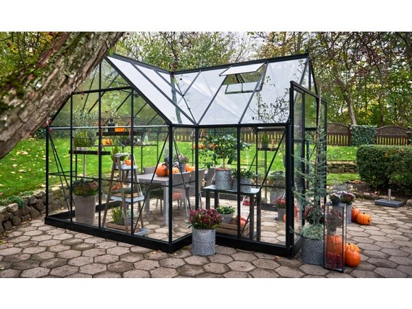 Halls Garden Room 12,9 m² drivhus 3 mm hærdet glas, sorte profiler og fundament. Halls Garden Room 12,9 m² er et stort drivhus med masser af plads til dyrkning af planter, blomster, frugter, krydderurter og hele familien til både hverdag og fest. Halls Garden Room er det perfekte uderum til den aktive familie, hvor du uden problemer kan opdele dyrkning i den ene side af drivhuset og plads til hele familien i den anden side.