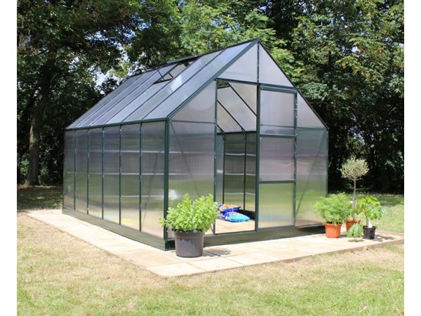 Halls Universal 128 9,9 m² drivhus med 6 mm polycarbonat og grønne profiler er et diamantformet drivhus med en meget kraftig konstruktion. Halls Universal drivhus har et meget klassisk design tilsat nogle meget lækre detaljer. Det er et meget praktisk og stabilt drivhus. Alt i alt får du her et meget rummeligt drivhus med en højde på over 2 meter, så du har rig mulighed for at lade kreativiteten få frit løb.