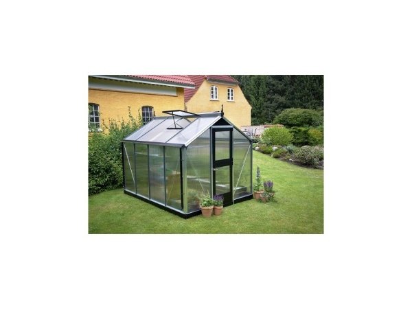 Juliana Compact drivhus 5,0 m2 med 10 mm polycarbonat og aluprofiler model F09553 er til dig, der ønsker et lille drivhus til at dyrke tomater, agurker, chili, peberfrugter eller de blomster, der normalt har svært ved at klare det omskiftelige danske klima. I så fald har Compact-modellerne fra Juliana den helt rigtige størrelse. Den gode sidehøjde og totalhøjde giver en god rumfornemmelse og gode arbejdsforhold. Juliana Compact er tiltænkt den kræsne forbruger, der ønsker et mindre drivhus, men som gerne vil betale for kvalitet, gode funktioner og lækkert design.