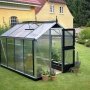 Juliana Compact drivhus 5,0 m2 med 10 mm polycarbonat og antracitgrå profiler model F09554 er til dig, der ønsker et lille drivhus til at dyrke tomater, agurker, chili, peberfrugter eller de blomster, der normalt har svært ved at klare det omskiftelige danske klima. I så fald har Compact-modellerne fra Juliana den helt rigtige størrelse. Den gode sidehøjde og totalhøjde giver en god rumfornemmelse og gode arbejdsforhold. Juliana Compact er tiltænkt den kræsne forbruger, der ønsker et mindre drivhus, men som gerne vil betale for kvalitet, gode funktioner og lækkert design.