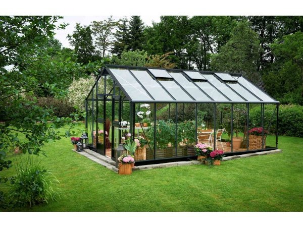 Produkt Juliana Gartner drivhus 21,4 m2 med 3 mm hærdet glas og antracitgrå profiler model F09512 er en del af Gartner-serien, som er velegnede til dem, der gerne vil have god plads. Hvad enten du er drivhusentusiaster, der vil gro og dyrke, eller blot typen, der søger dejligt uderum i haven, så dækker Juliana Gartner behovet. Den ekstra store sidehøjde på 172 cm og totalhøjden på 287 cm (begge mål inklusiv 12 cm stålfundament) giver en god rumfornemmelse og gode arbejdsforhold.