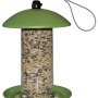 Ryom foderautomat t/frø- og solsikkeblanding i en let konstruktion i plast, bajonetlukning i bunden for nem rengøring og wirelukning for nem ophængning og påfyldning.