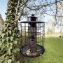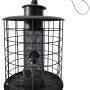 Ryom foderautomat med værn til fugleblanding. Foderautomatens yderste gitter sikrer, at småfuglene kan spise i fred, og at foderet ikke spises af større fugle.
