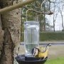 Ryom vandautomat til vildfugle og småfugle er en 500 ml beholder i kraftigt glas og drikkeskål i metal. Vandautomaten fra Ryom kan let skrues af for rengøring og påfyldning, mens den er udstyret med kraftigt ophæng i metal.