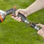 Gardena premium slangekobling med vandstop 1/2" (18253). Med en premium slangekobling i højkvalitets metal/plast-design får du hurtig og nem forbindelse til slangen. Med den integrerede anti-kink beskyttelse forhindres slangen i at glide ud, og den aflange metallåsemøtrik sørger endvidere for et særlig kraftigt greb i slangen. Og med den innovative frostbeskyttelse er du sikret en længere holdbarhed. Denne slangekobling er udstyret med praktisk vandstop, hvilket betyder, at vandstrømmen afbrydes, så snart sprøjtedysen eller sprøjtepistolen frakobles og den begynder først igen, når der er tilsluttet et nyt vandtilbehør til slangen, så du kan spare turen til vandhanen samtidig med, at du sparer på vandet.
