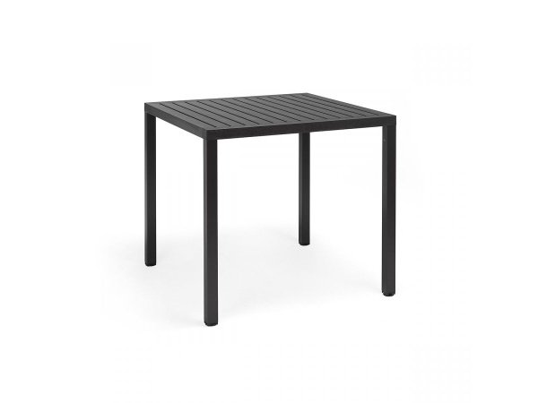 Nardi Cube 80 havebord er fremstillet med firkantede ben i lakeret aluminium med justerbare fødder i højden.