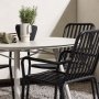 Venture D. Lina spisebordssæt m/4 stole er velegnet til udestuen eller terrassen. Det runde spisebordssæt fra Lina-serien er fremstillet i et enkelt, men frisk design i en flot beige farve. Spisebordssættets bordplade er dynd med dekorative sprækker, der flot kombineres med 4 spisestole fra Peking-serien.
