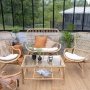 Venture Design loungesæt Ella er et flot loungesæt, der er perfekt til udestuer, orangerier og lignende. Sættet består af sofa, bord med glasplade og 2 stole i polyrattan. Der medfølger hynder til både stolene og sofaen.