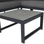 Venture Design loungesæt Salvador sort er et stilrent loungesæt fremstillet i sort aluminium. Bordet har en glasplade, som er spraymalet i den grålige farve. Der medfølger hynder til sofaen, hvor der er plads til hele 5 personer.