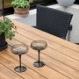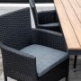 De tilhørende stole fra Malina-serien er behagelige at sidde i, mens der samtidig er tale om holdbare stole i en aluminiumsramme og er polstret med flettet, sort kunstrat.