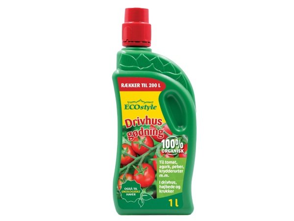 Ecostyle drivhusgødning 1000ml koncentrat (1153). Drivhusgødningen er 100% organisk, der langsomt frigiver den næring, som planterne har behov for. Bemærk, at organisk gødning er ikke egnet til selvvandingspotter, kapilærkasser og lignende selvvandingssystemer.
