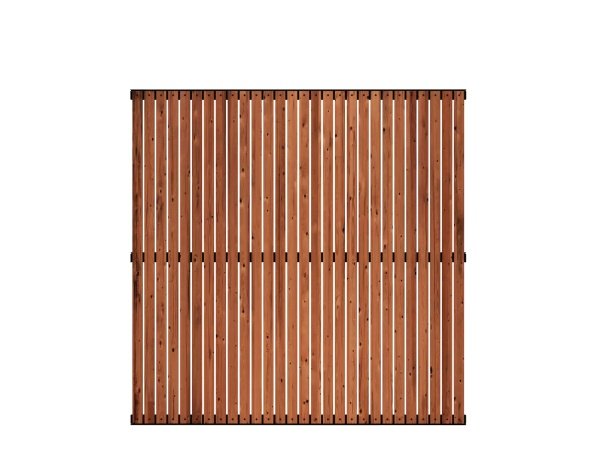 De lodrette lister i ThermoWood® giver hegnet et roligt og sammenhængende udtryk, der passer perfekt til nutidens byggestil og skaber en naturlig overgang mellem hus og have. Samtidig afskærmer trælisterne uden at lukke helt af, så du får privatliv og uden en indelukket følelse. Hegnet er ideelt til opdeling af uderummet eller som et dekorativt terrassehegn.