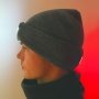 Ryom strikhue med LED-lygte foran og bagpå. Med denne hue kan du holde varmen, og samtidig få godt lys både forfra og bagfra.