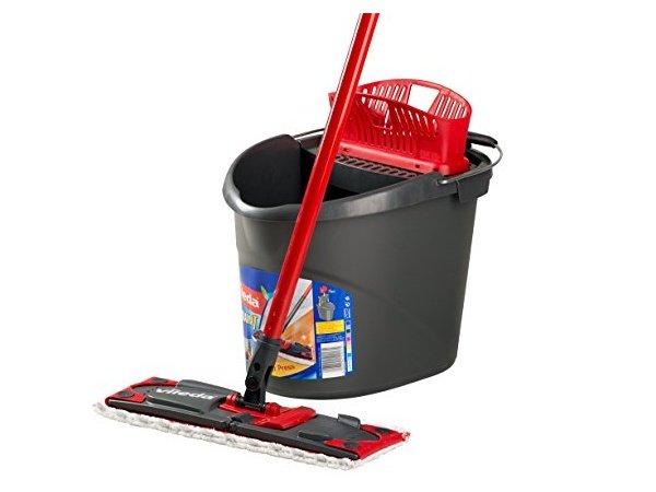 Vileda moppesæt med spand. Med dette rengøringssæt bliver rengøringen lidt nemmere. Moppen er med teleskop skaft, så du kan justere den i højden.