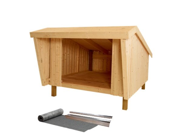 Plus shelter 225x291x170/107 cm med tagpap giver dig mulighed for at opleve naturen på en helt ny måde. Overnat i skoven trygt og sikkert i denne solide shelter. Shelteren leveres som 'saml selv', hvor sider og gavl leveres færdigsamlet og tag- og gulvbrædder leveres usamlet.