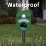 Ryom katteskræmmer med solar alarm/blitz, 3 frekvensområder med ultralyd 13,5 - 45 KHZ og pir sensor, der rækker 110 gr. og op til en afstand på ca. 10 m.