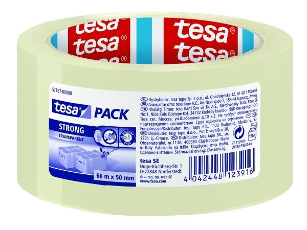 Tesa Strong Emballagetape er UV-bestandig pga. det stærke bæremateriale polypropylen, herudover er tapen meget modstandsdygtig mod forskydningskræfter pga. en særlig klæbemasse, der giver stærk og sikker forsegling.